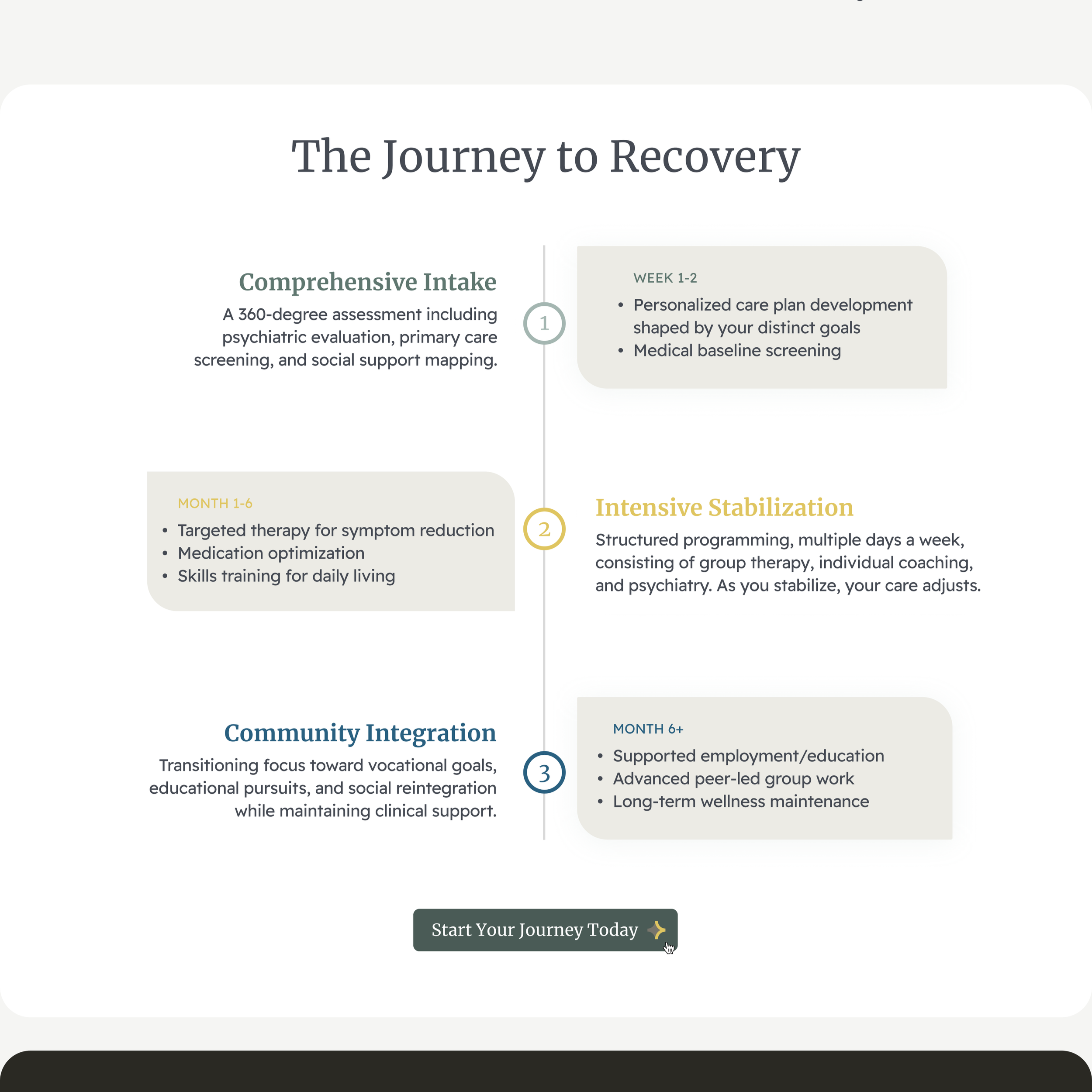 The wireframes give Amae a clear path from a bare-bones site to one that communicates the full depth of its clinical model — with hard data, structured program information, and dedicated pathways for the two audiences that matter most. When the redesign goes live, the site will finally match the quality of care Amae delivers.